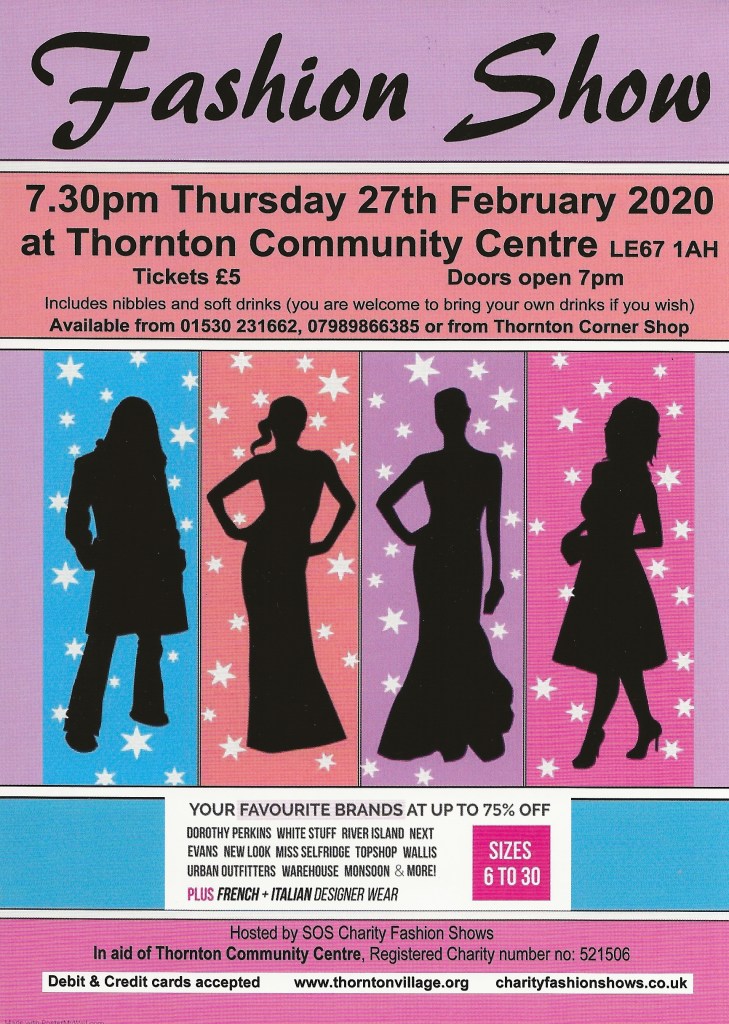 Come along to our Fashion Show on Thursday 27th February at Thornton Community Centre.