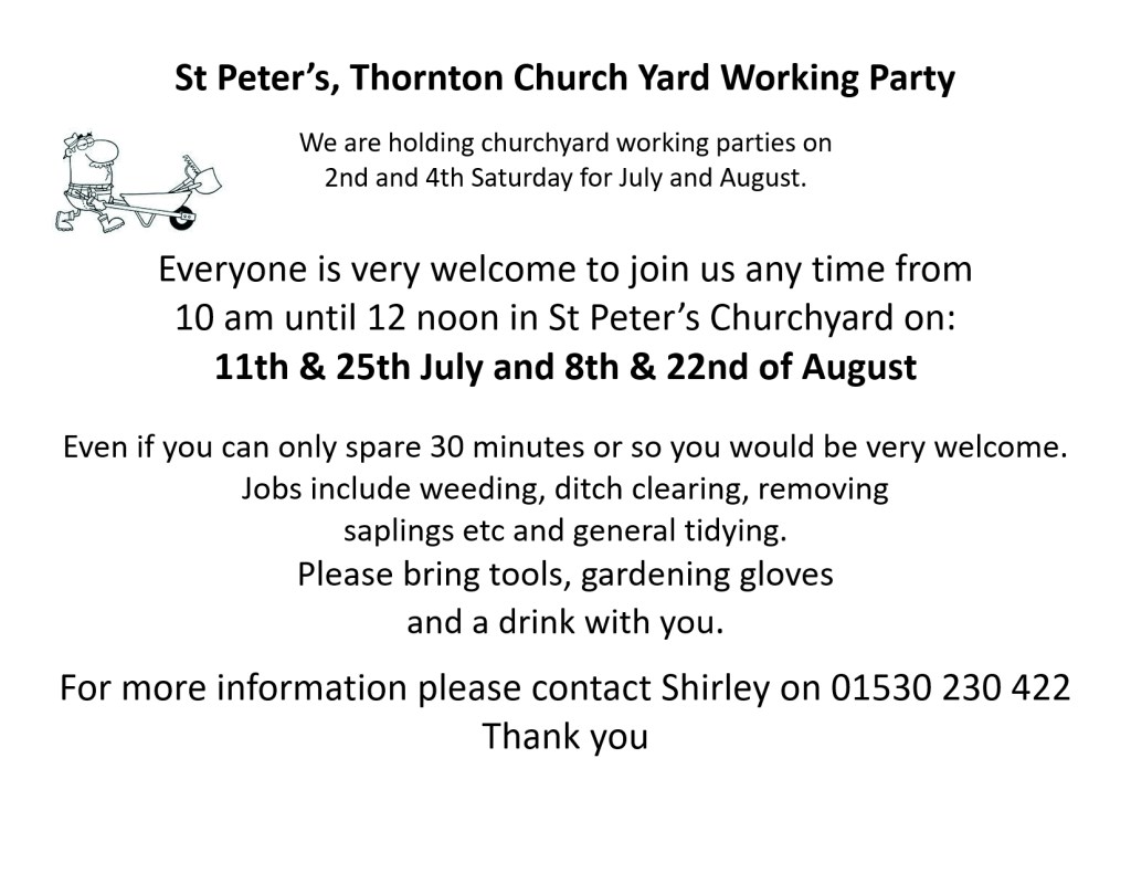 Shirley is organising a working party to tidy up the church yard and is looking for volunteers to help out.