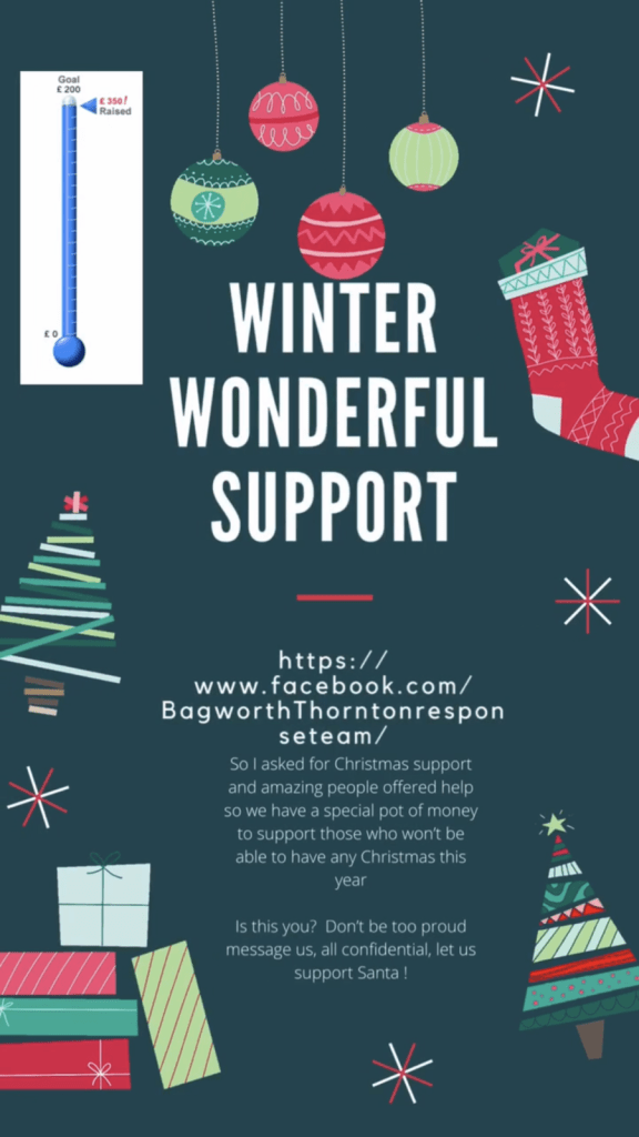 Helen Crouch from the Bagworth, Thornton and Stanton Coronavirus Response team, set up a Facebook fundraiser for her birthday last week, wishing for £200 to be donated to support local people at Christmas.