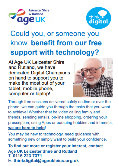 Age UK’s Digital Champions scheme, assisting older people in the community to become more confident using technology. This will enable people to keep in touch with friends and family, learn how to shop online and also help pursue hobbies and interests.