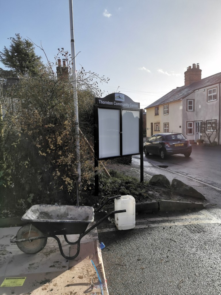 Whilst many of the improvements can’t be seen by the public, they include a new kitchen, purchase of sports equipment, a portable public address system and microphones, new crockery, new interior noticeboards and more; culminating in the purchase and erection, at substantial cost, of two, new, large noticeboards at the entrance to the hall.