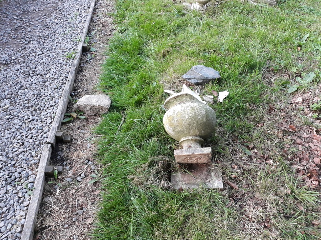 It’s very upsetting when monuments in the churchyard for village people who have died are damaged. Sadly this is what has happened this evening, 26th July in St Peter’s churchyard around 6 to 6.30 pm.