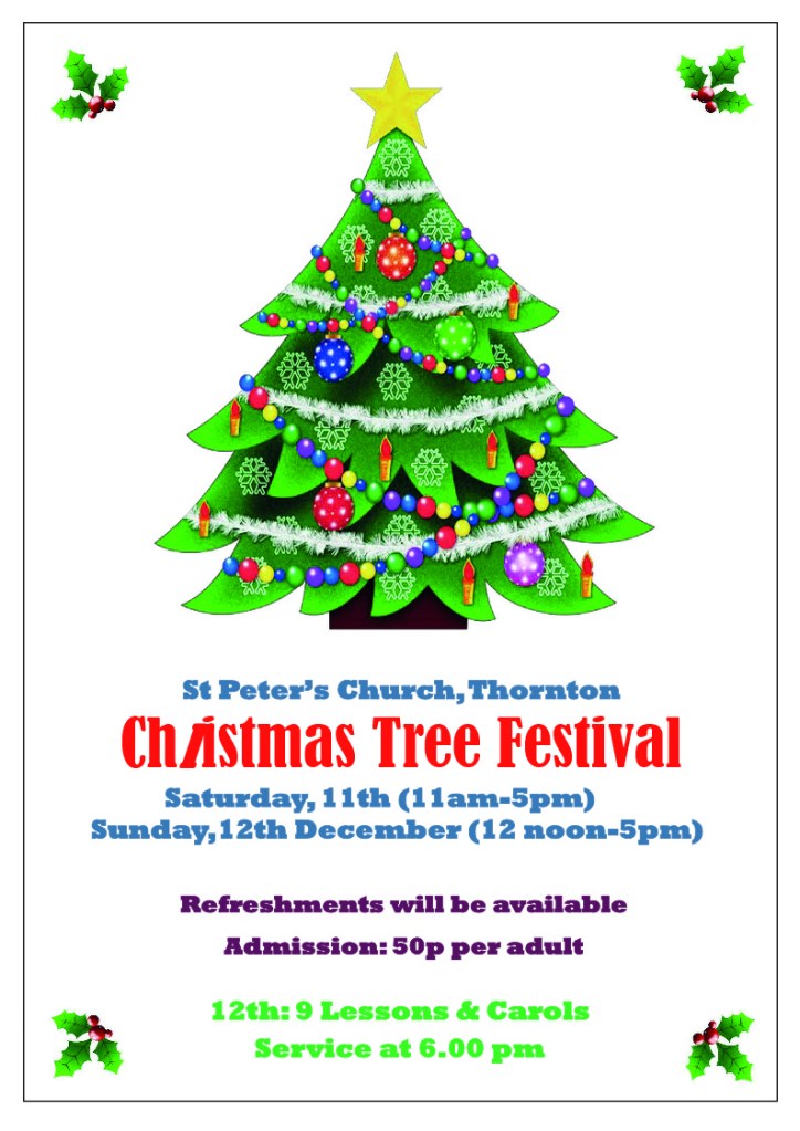 Come and see the beautiful old village church adorned with Christmas trees. This year the theme is ‘Christmas Stories’