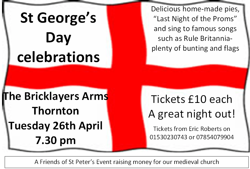 If you would like to offer assistance or be involved in any way with any of these events or would like more information please contact Churchwarden: Shirley Garlick – churchwarden.thornton@gmail.com or phone 01530230422