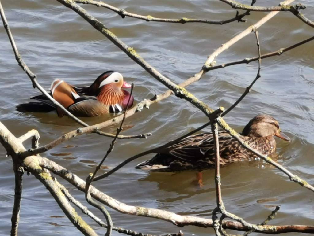 Our most colourful visitor the Mandarin is back and busy making friends.