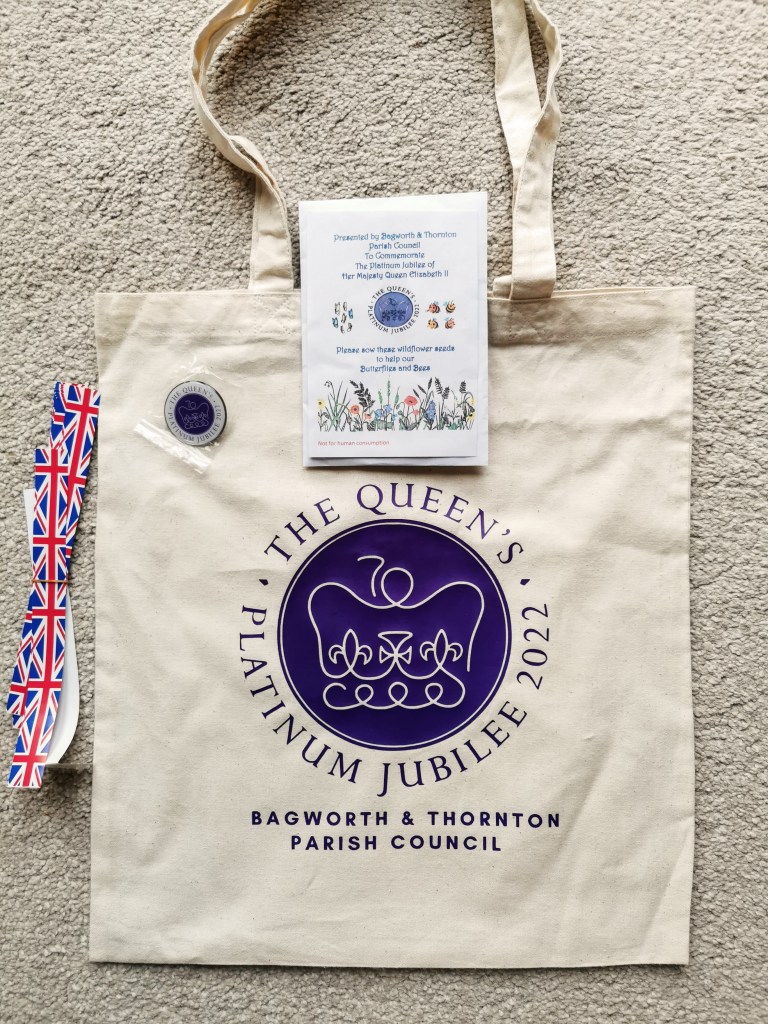 Each bag contains a jubilee badge, a packet of wild flower seeds, union flags for making chain link decorations and a tea towel.