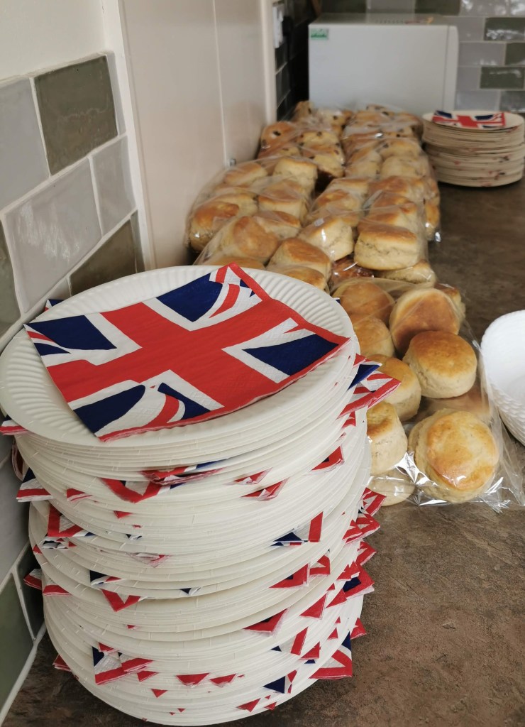 What a fabulous turn out at the Community Centre to celebrate the Queen’s Platinum Jubilee on Saturday. For most of the afternoon the hall was full, with residents (and a few visitors) coming and going with family, friends and neighbours. Everyone enjoyed a free cream tea and a goodie bag (courtesy of the Parish Council). The visitors were able to have a natter whilst enjoying a back drop (over the stage) of the Queen’s Jubilee Trooping of the Colour and other celebratory events projected on the new big screen (purchased from a grant given to the Centre by Forterra brickworks) a great addition to the hall facilities. The younger children were able to have fun drawing and painting tiles also provided by the Parish Council.