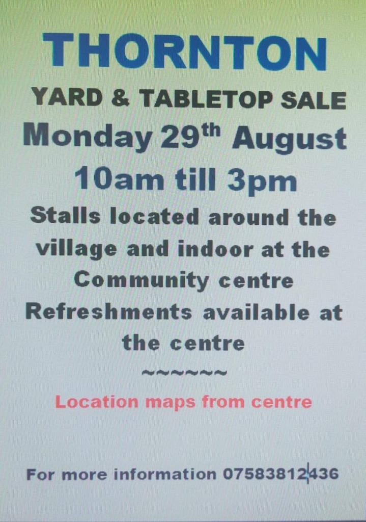 If you would like to obtain more details or to apply, please contact the Trustees – on email: – thorntonvillage@aol.com