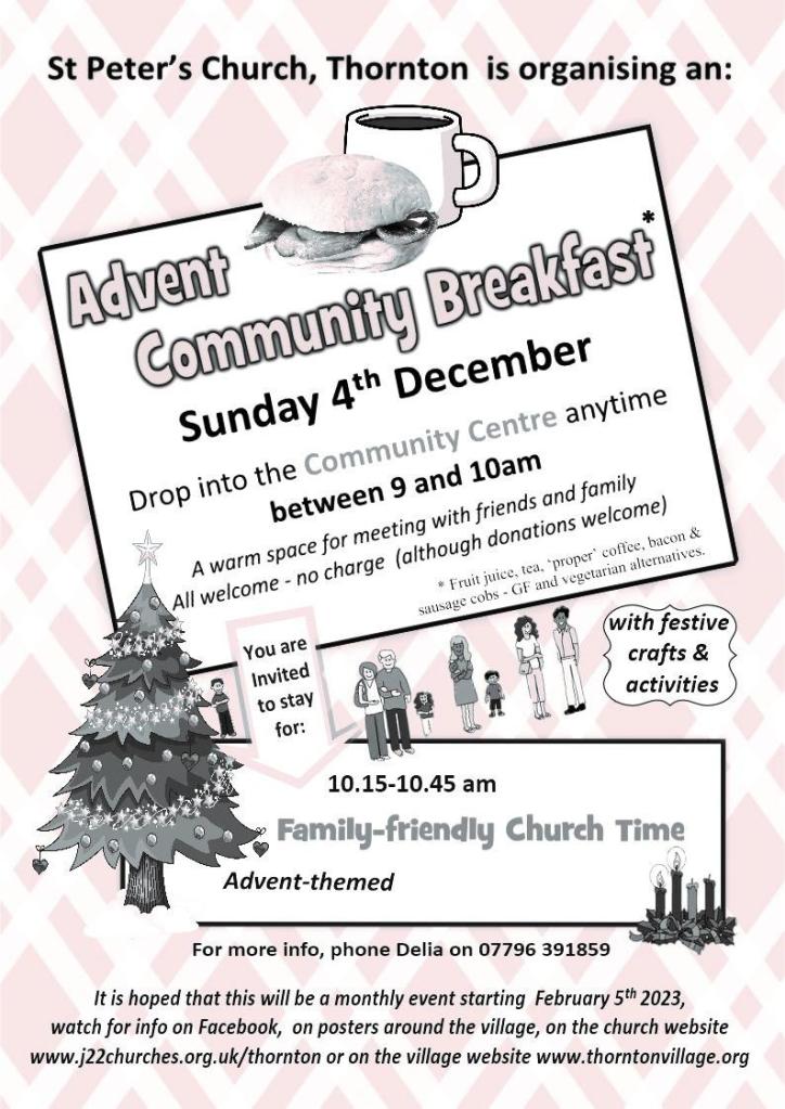 Advent Community Breakfast – Sunday 4th December