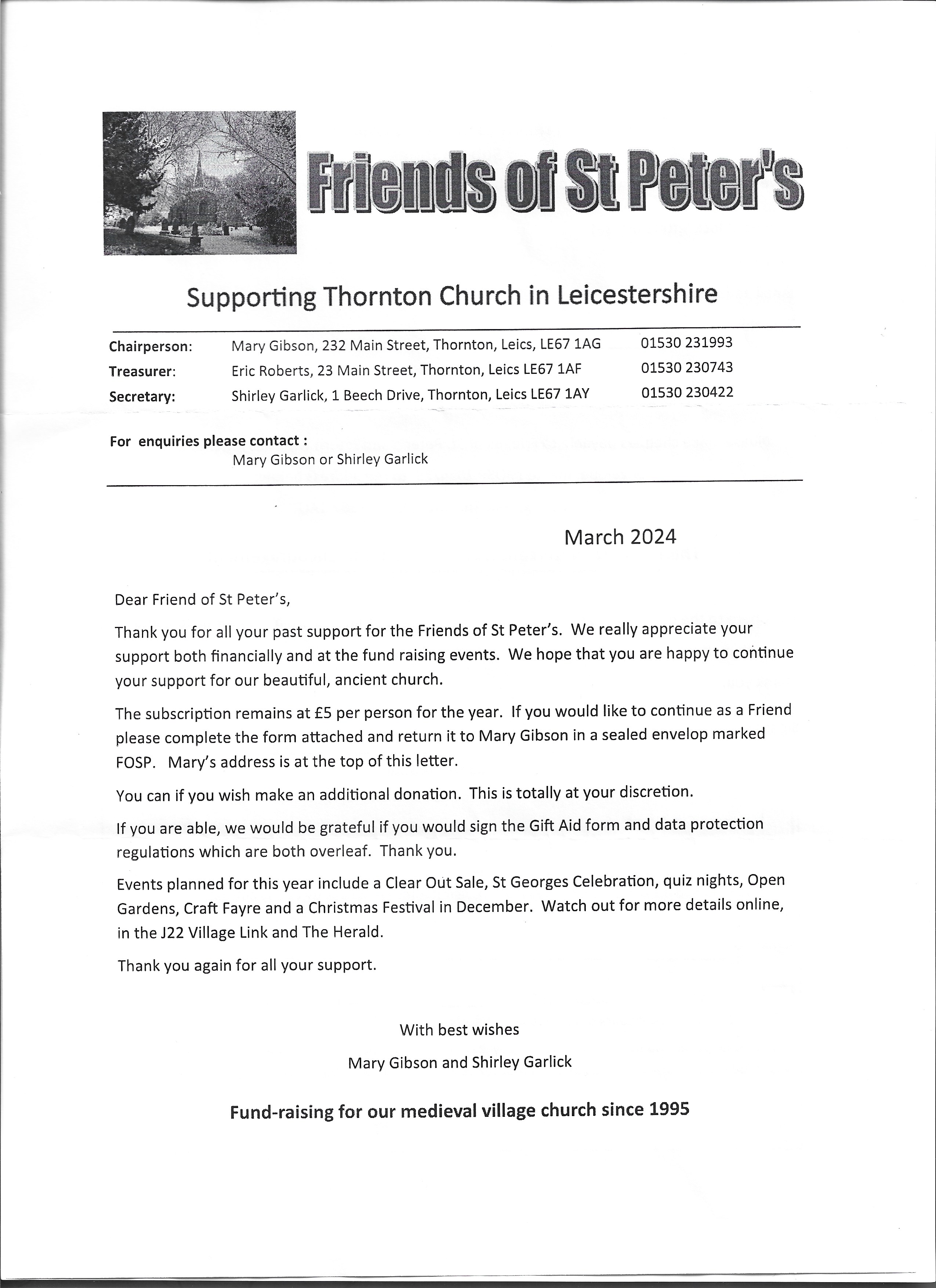 Please contact us at thorntonvillage@aol.com or join us at the AGM to have a conversation.