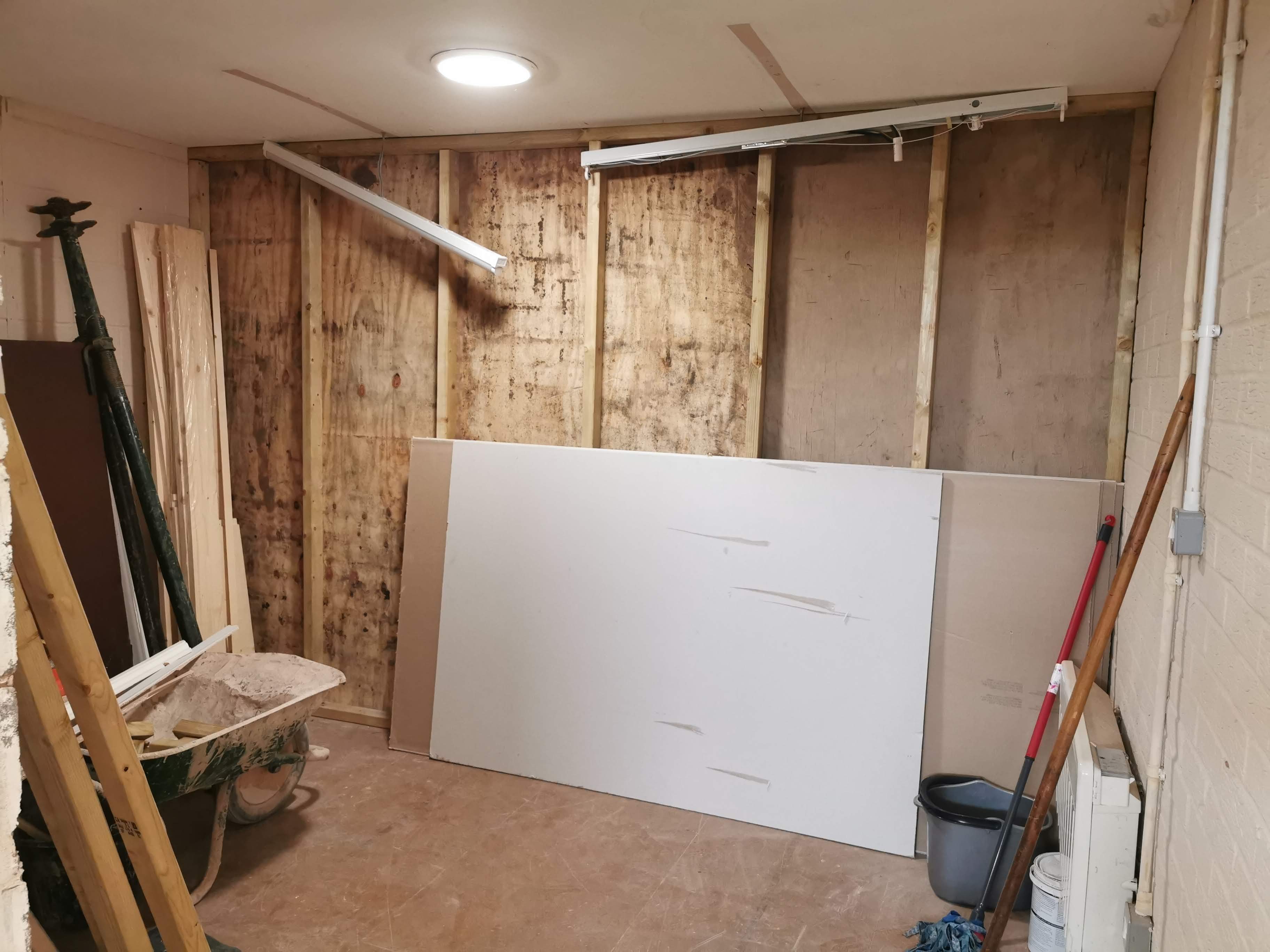 There are a few minor internal works that still need completing (new main hall door, new flooring in the Main hall foyer, toilet and kitchen, bricking up an obsolete rotting door and frame plus major works outdoors – the erection of a decked area off the Main hall patio doors and the extension of the car park.
