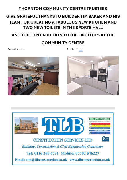 The trustees apologise for any inconvenience caused by the recent building work in the Sports Hall at the Community Centre.