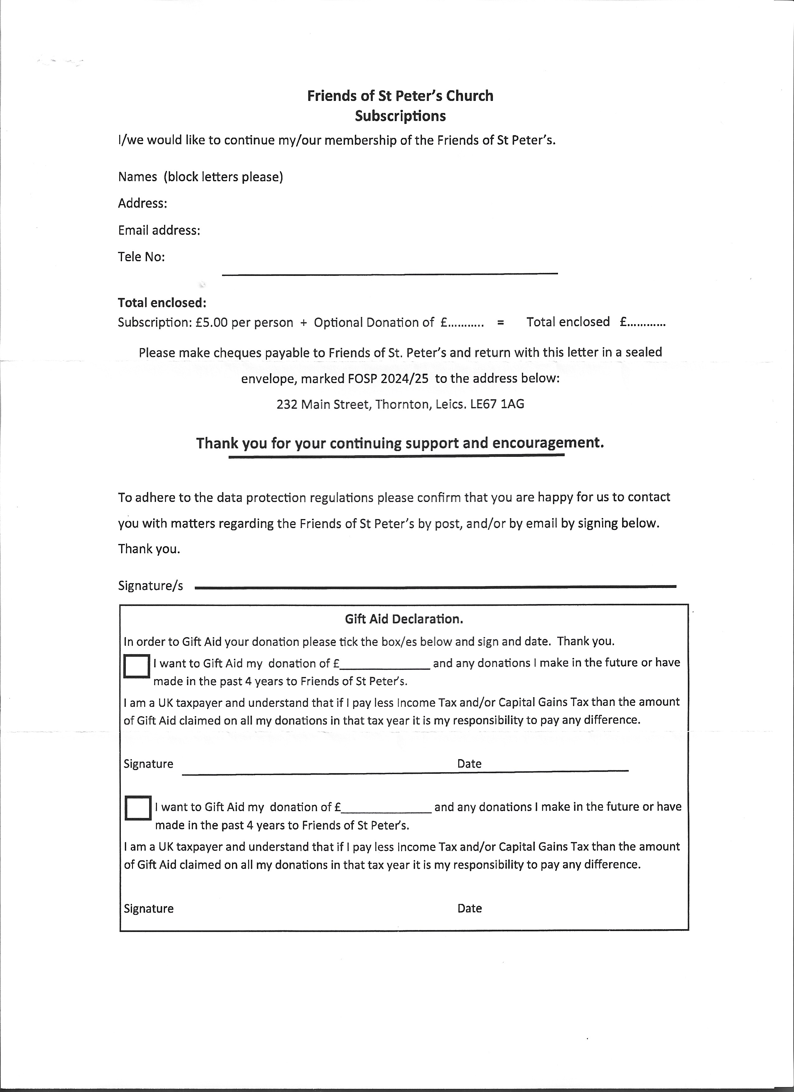 The Friends of St Peter’s (FOSP) are a small group of villagers who fund raise for the repairs and refurbishment of the church and grounds. Part of all monies raised are through a number of village events and some by a small membership fee and donations.