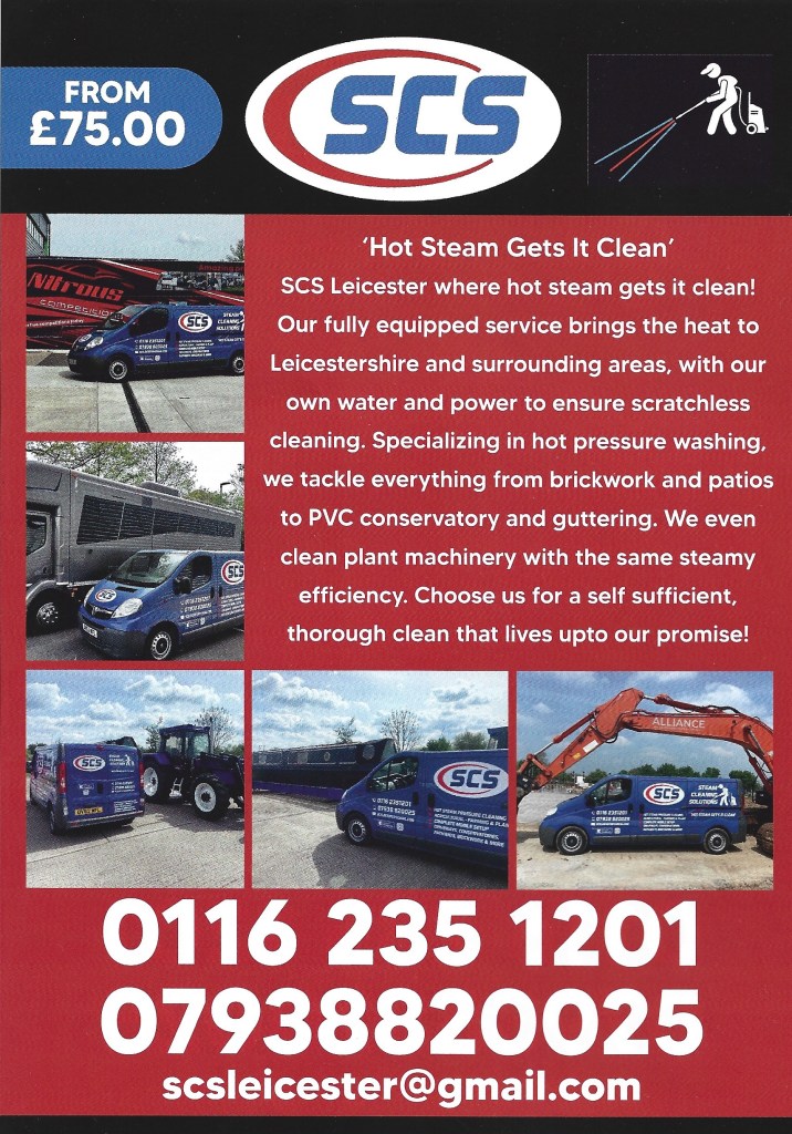 Hot steam gets it Clean. Hot pressure washing. Looking to spruce up your garden patio, bricks, conservatory, guttering and more. Then try new company SCS (Leicester). Colin has made an excellent job of ‘refreshing’ the look of the old slabs on my patio and front drive. Contact Colin for a quote on