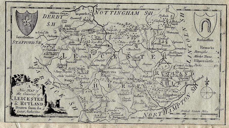 From the middle of the 18th century, we have a number of maps of this part of the county with the main county roads marked on them which earlier maps did not have. The first map listed here is the Bowen map dated to 1767 and although this postdates the introduction of the toll road from Leicester to Ashby, it does not show it. The only road shown is the old, parish road which probably means the map printer bought and used an old out of date plate for the map, not unusual in those days. This does show the road going through Bagworth Park with Bagworth named.